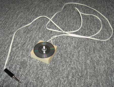 Soweit so gut, doch der Schalter lag nun recht ungeschützt und zudem war das Holz nicht lackiert. Ich überlegte also, das ich das Gerät mit irgendetwas abdecken müsste: Zunächst kam mir in den Sinn, eine Plexiglas-Scheibe zurecht zu sägen, dann fiel mir jedoch eine alte, kleinformatige CD ein die perferkt auf den Holzblock passte und die ich mit einer einfachen Mutter am Schalter befestigte - und fertig war die Footswitch: